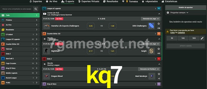 O kq7 oferece uma grande seleção de opções de apostas em e-sports com probabilidades competitivas